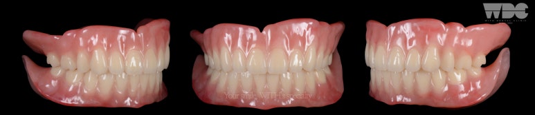 그리고 틀니가 완성되었습니다. 하지만 완성된 틀니를 입안에 그대로 껴드리는 것은 아닙니다. 제작과정에서 레진재료가 약간의 수축을 보이기 때문에, 아무리 정밀하게 본뜨는 과정을 거쳐서 만든다고해도 입안에서 상당량 조정과정이 필요합니다. 잇몸과 만나는 부분들의 조정과 함께 위아래 치아가 잘 물리도록 조정하는 과정이 필요한데,