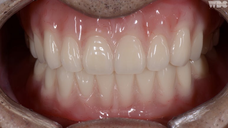 최종틀니가 입안에 장착되어 치료가 끝난 상태의 모습입니다.