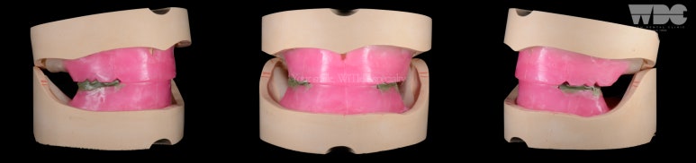 다음은 임시틀니 제작때와 마찬가지로 위아래 턱의 위치와 높낮이를 결정하는 과정을 거치고,