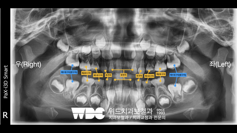 10세 아이의 파노라마방사선사진입니다.